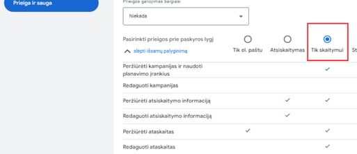 Toliau pasirinkite prieigos lygį „Skaitymo režimas“. (Žr. 2-ąją nuotrauką.)